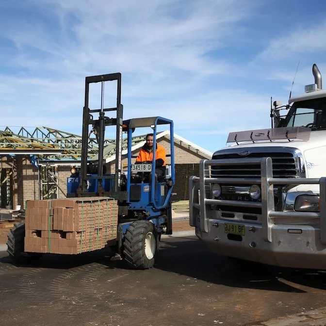 We can deliver direct to your building site with our rear-mount Moffett forklifts making it easy to transfer bricks from our trailer to your location.